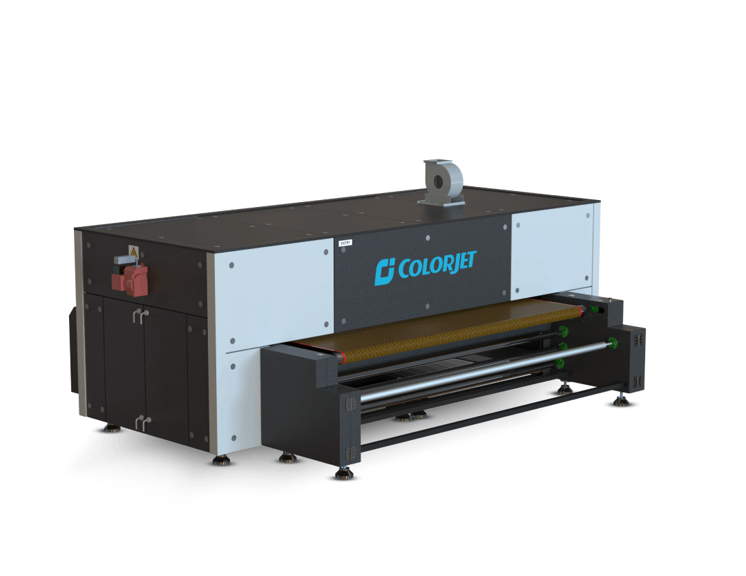 Colorjet's Complete Solution For Digital Textile Printing stenter to pre-treat RFD fabric for digital printing, loop ager for continuous steaming after printing, continuous polymerizing unit, continuous washing for removing excess dyes and chemicals and vertical drying range to dry the fabric.