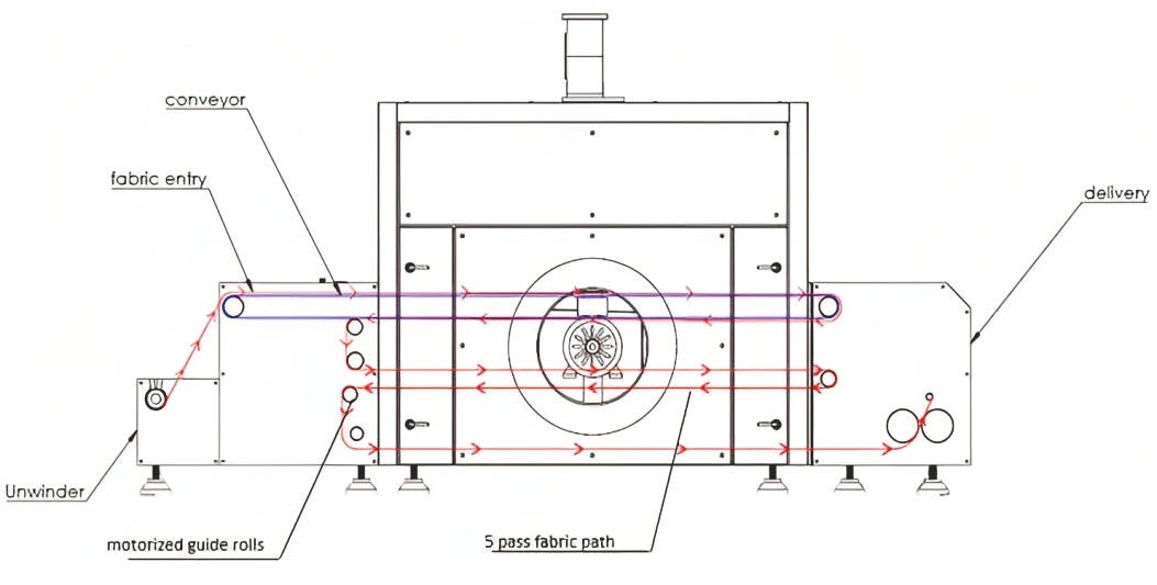 • A closed loop ager chamber where the fabric is processed in relaxed form.