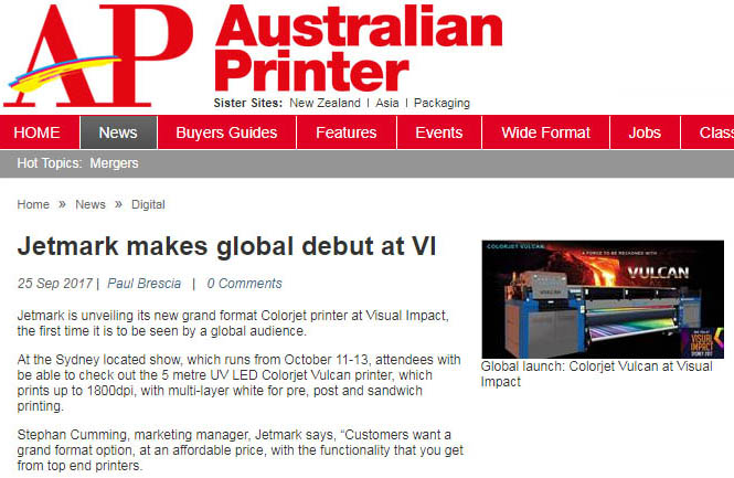 Jetmark is unveiling its new grand format Colorjet printer at Visual Impact, the first time it is to be seen by a global audience.