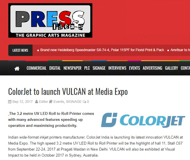 Colorjet to launch UV LED printer Vulcan at Media Expo Delhi