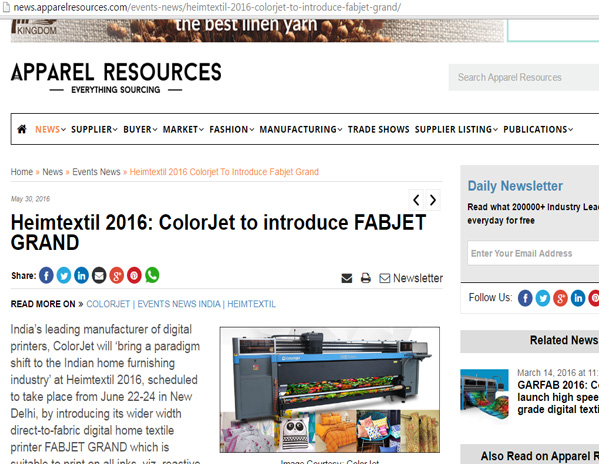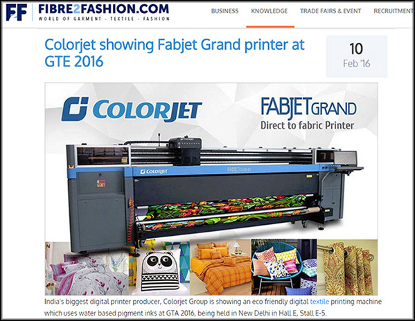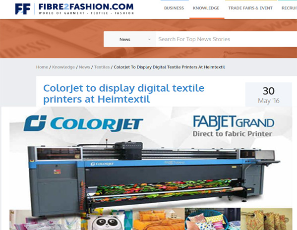 GARFAB 2016 : Colorjet to launch high speed industrial grade digital textile printer